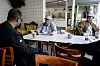 Stamkunder vid bageriet i Rågsved. Härifrån syntes den öppna droghandeln tydligt förut. Men sedan vistelseförbud började delas ut har den i praktiken försvunnit från förortscentrumet.