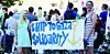 Manifestation till stöd för Ship to Ghaza i Stockholm i juni. Svenska kyrkan hävdar att man inte tar ställning till aktionen, som stöddes av biskop Eva Brunne, före detta ärkebiskopen KG Hammar och biskop emeritus Martin Lind genom ett öppet brev.