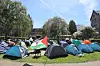 Ett hundratal studenter slog upp ett tältläger utanför Köpenhamns universitet i måndags.