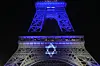 Eiffeltornet i Paris upplyst i den israeliska flaggans färger efter Hamas terrorattack den 7 oktober förra året.