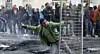 En palestinier kastar sten mot israeliska soldater efter begravningen av den omkomne fången Arafat Jaradat på måndagen. På tisdagsmorgonen avfyrades en raket från Gaza och slog ner utanför Ashkelon utan att orsaka personskador.