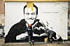 ”Vår tids hjälte”, lyder texten vid graffitin av den fängslade Kremlkritikern Aleksej Navalnyj, som målas över i Sankt Petersburg.