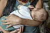 På en tecknad bild som region Värmland lagt ut på Instagram syns en sjuksköterska i hijab fråga ett par, som ser ut att vara en man och en kvinna, vem av dem som ska amma. Båda räcker upp sina händer.
