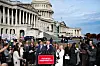 Politiker från höger till vänster har stått sida vid sida i kampen för att dokumenten ska släppas. På bilden håller några av dem en presskonferens tillsammans med Epsteinoffer och deras anhöriga inför omröstningen i representanthuset.