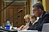 Riksrevisorerna Susanne Ackum, Margareta Åberg och Ulf Bengtsson vid KU-förhören på fredagen.