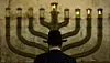 En ortodox jude ber framför en menora vid Västra muren i Jerusalem.