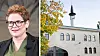 S-politikern Karin Wanngård (t v) anklagas för att vara naiv inför utländskt finansierade moskéer i Sverige. Till höger syns Stockholms moské, som är betydligt mindre än den som planeras i Skärholmen.