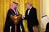 Saudiarabiens kronprins Mohammed bin Salman och USA:s president Donald Trump skakade hand under en bankett i Vita huset.