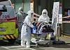 Staden Daegu i Sydkorea har drabbats av coronaviruset. På bilden ses ambulanspersonal ta hand om en person som misstänks ha blivit smittad av viruset.