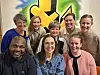 Många vuxna är engagerade i Fri och modig. Bakre raden från vänster: Katrin Sjögren, Sofia Sverlander, Rebecka Andersson, Frida Axelsson och Isabell Tiderblom. Främre raden från vänster: Amos Makajula, Pernilla Johansson och Veronica Gustavsson.