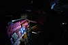Människor handlar mat i en mörklagd matbutik i Pamplona i norra Spanien på måndagen.