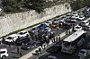 som satt fast i trafiken vid en checkpoint på en stor farled in mot huvudstaden