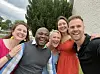 Sävsjöpastorn Amos Makajula, tvåa från vänster, fick besök av ett gäng amerikanska tv-deltagare i somras. Jonathan Strand ses längst till höger i bild.