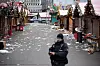 En polis vid den avspärrade julmarknaden i Magdeburg, där flera personer dödades när en bil körde in i en folkmassa på fredagen.