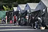 Evakuerade i regionen Kursk sitter vid tält på ett tillfälligt boendecenter. (Bild från i måndags.)