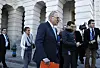 Senatens minoritetsledare Chuck Schumer på väg att möta pressen efter att ha träffat president Donald Trump på på fredagen.