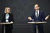 Socialminister Jakob Forssmed (KD) och utredaren Åsa Hansson presenterade en delrapport från utredningen om de sjunkande födelsetalens påverkan på Sveriges ekonomi och välfärd.