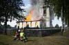 Sjösås kyrka i brand den 3 september 2022. Nu står det klart att en ny gudstjänstlokal kommer att uppföras på denna plats.