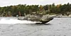 En så kallad stridsbåt 90 på Nämndöfjärden i Stockholms skärgård under den fortsatta ubåtsjakten på lördagen. I helgen har fler än 200 man från försvarsmakten deltagit i jakten på information om undervattenskränkningar.