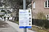 Skyltar som informerar om säkerhetszonen i Diplomatstaden upprättades under tisdagen.