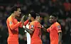 Nederländerna med storstjärnan Virgil Van Dijk (t v) under EM 2020.