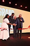 Wao Churchs nya lokaler i Göteborg invigdes med bandklippning under söndagen av (fr v) det lokala pastorsparet Abigail och Michael Berhane samt Carolina och Lennart Torebring.