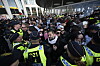 Stökigt utanför arenan: Propalestinska aktivister försökte ta sig förbi poliser