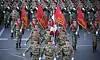 Ryska militärer marscherar på Röda torget i Moskva för att fira Segerdagen.