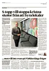 Han sätter upp rött ljus för kristna skolor att hyra lokaler i Stockholm och vill helt förbjuda existensen av dem i landet. Men i hans tunga kyrkliga uppdrag som kyrkomötesledamot och förste vice ordförande i Stockholms stifts styrelse ska han arbeta för att sprida ”Svenska kyrkans tro, bekännelse och lära, som gestaltas i gudstjänst och liv”, som de första raderna i kyrkoordningens (KO) portalparagraf lyder.