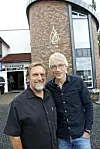 Håkon Fagervik och Leif-Johnny Johannessen utanför bönetornet i Levanger, där bön pågår varje dag i veckan. Foto: Jonas Adolfsson