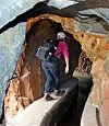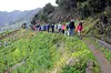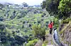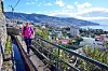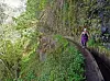 När stigen blir riktigt smal sträcker min fru ut sina armar som om hon skulle flyga. Då blir det lättare att hålla balansen. Här gäller det att inte ta några felsteg. Till vänster om stigen är det ett stup, till höger om stigen rinner en levada. Det är en vattenränna, uthuggen ur den branta bergssidan, som är så typisk för Madeira.