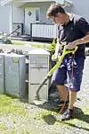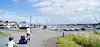 En bit längre in på Hönö börjar husvagnar i långa rader att skymta och på en stor gräsplätt sitter sällskap i grupper och äter frukost. Utanför en husvagn med förtält sitter två kvinnor och stickar.