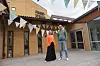 i Jönköping. Det grå vägs dock upp av några rader med färgglada vimplar som hänger
