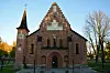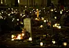 Just som ljuset är på väg att dra sig undan penslas Mariakyrkans tegelfasad med ett vackert ljusspel. Och då solens sken alltmer ger efter för skuggorna, börjar lyktorna på kyrkogården lysa bland höstlöven. Inom några dagar kommer många fler lyktor att tändas, då många reser in under Allhelgonahelgen för att besöka gravarna och minnas nära och kära som lagts till vila.