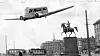 Aprilskämt 1950: Spårvagnsflyget, som skulle gå i Stockholms centrala innerstad. (Bilden är ett montage.)