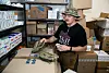 Barnmat, tandkräm, bindor, kex. I en lagerlokal i Lviv i västra Ukraina packar Iryna Sharova kartonger som ska skickas till flyktingar och andra civila nära krigets frontlinjer.